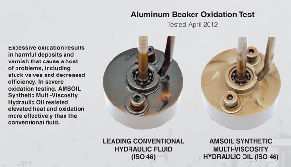 AMSOIL hydraulic oil is fortified with anti-varnish additives that react in the oil to prevent varnish from ever forming helping your hydraulic system stay clean. Clean hydraulic systems perform better and last longer.